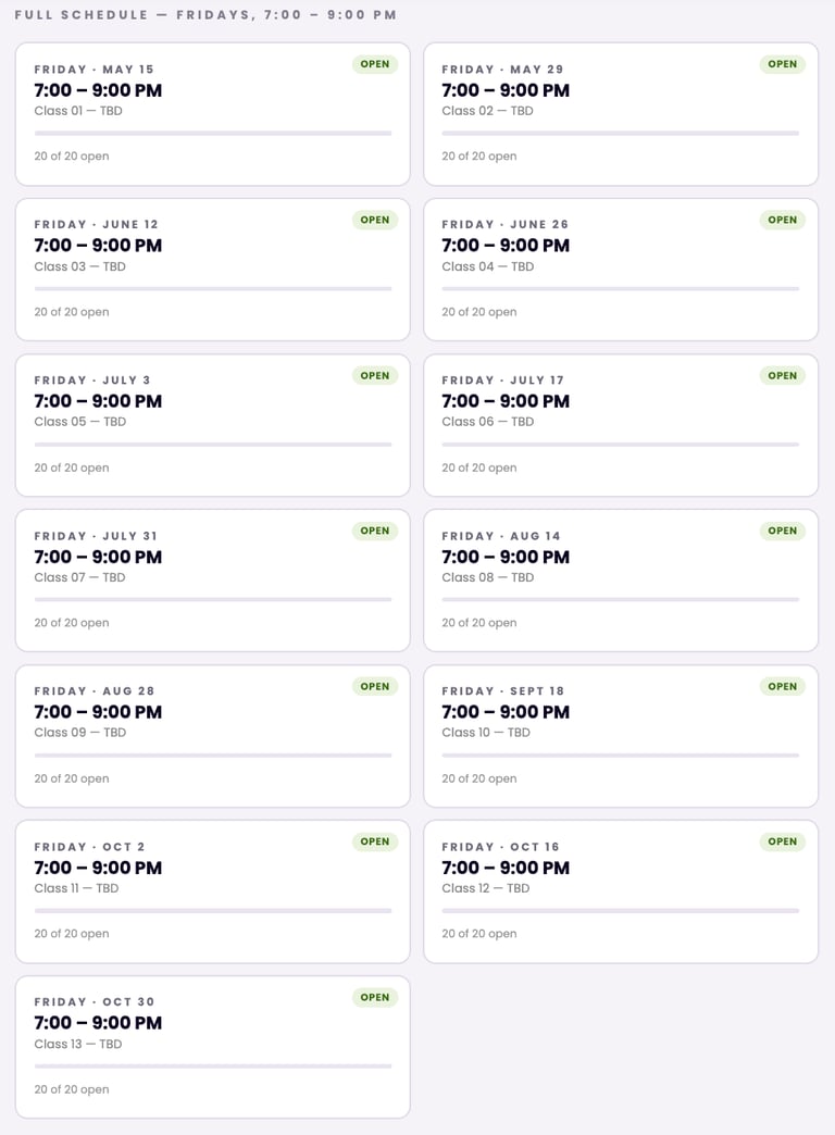 2 Friday night sessions per month
